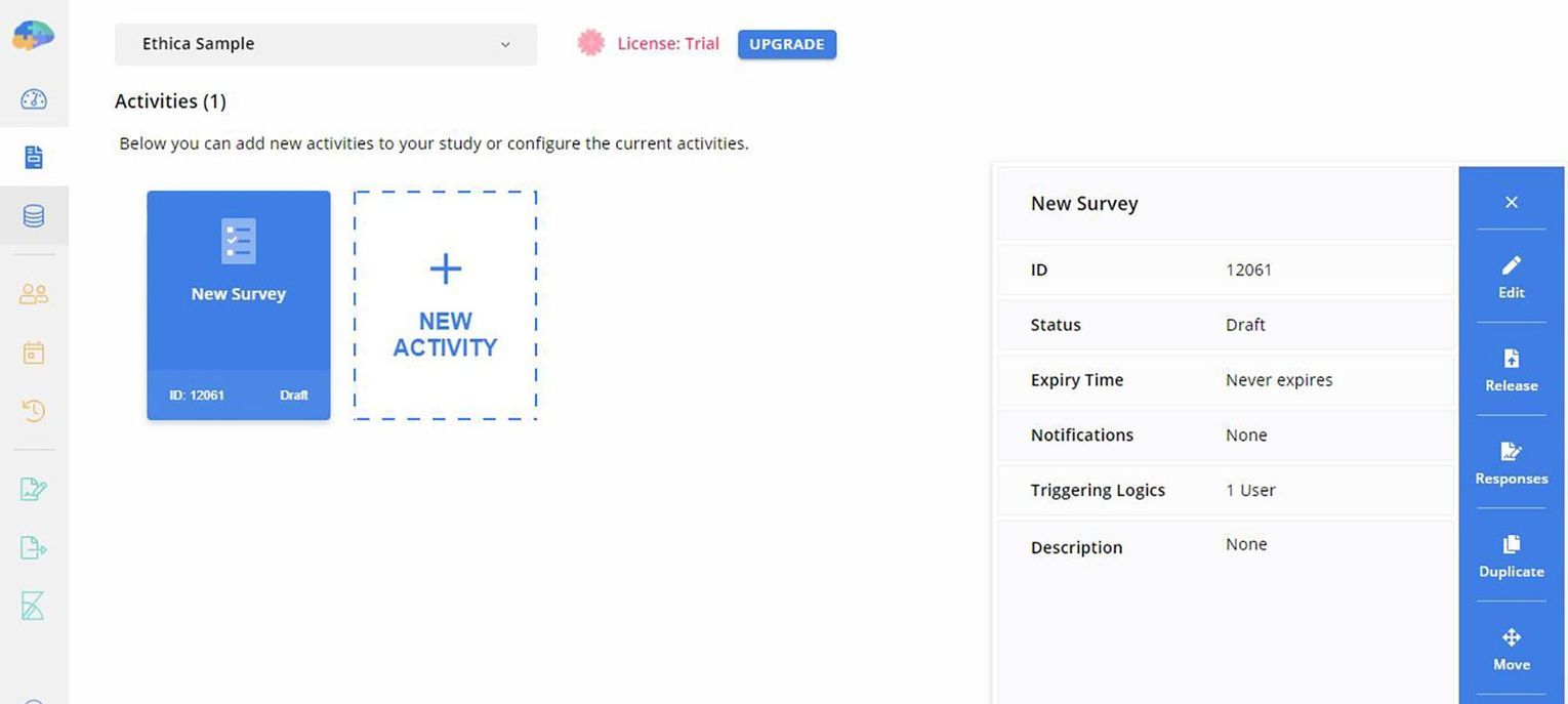 No worries. Our flexible research tool lets you modify surveys after being saved. All you need to do is select the Activities section from the left-side menu of your Researcher Dashboard to access your surveys. Click on the survey that you want to modify, and a menu will pop up on the right side of your screen. Choose Edit, and follow the instructions from step 2. You can read more about how to edit your surveys while your study is in progress here.